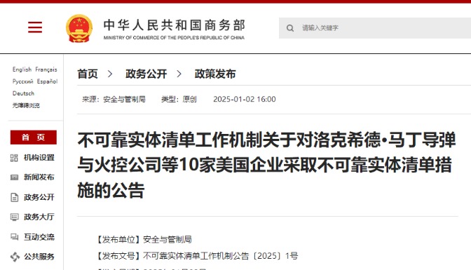 中國商務部外景(新華社資料圖) 據商務部網站25日消息,商務部決定將亨廷頓·英格爾斯工業公司(Huntington Ingalls Industries, Inc.)、扁平地球管理公司(Planate Management Group)、全球維度公司(Global Dimensions LLC)3家美國實體列入出口管制管控名單,並採取以下措施: 一、禁止向上述3家美國實體出口兩用物項;正在開展的相關出口活動應當立即停止。二、特殊情況下確需出口的,出口經營者應當向商務部提出申請。 此外,商務部將薩羅尼克科技公司(Saronic Technologies, Inc.)、愛爾康公司(Aerkomm Inc.)、國際海洋工程公司(Oceaneering International, Inc.)3家實體列入不可靠實體清單,並採取以下處理措施: 一、禁止上述企業從事與中國有關的進出口活動;二、禁止上述企業在中國境內新增投資。 同日,商務部新聞發言人表示,近年來,薩羅尼克科技公司、愛爾康公司、國際海洋工程公司3家公司不顧中方強烈反對,與台灣開展所謂軍事技術合作,嚴重損害中國國家主權、安全和發展利益。中方依法追究其法律責任。 發言人稱,中方一貫審慎處理不可靠實體清單問題,僅依法針對極少數危害中國家安全的外國實體,誠信守法的外國實體完全無需擔心。中國政府一如既往地歡迎世界各國企業來華投資興業,並致力於為守法合規的外資企業在華經營提供穩定、公平和可預期的營商環境。(完) 【編輯:淩玉輝】