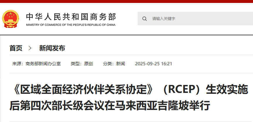 圖源:中國商務部網站截圖 據介紹,會議就近期區域和全球經濟發展及其對貿易、投資和經濟一體化的影響交換了意見,並討論了如何在當前全球經濟形勢下加強RCEP實施,以支持自由貿易和基於規則的多邊貿易體制。各方承諾避免採取任何與RCEP協定義務不符的措施,維護開放、自由和以規則為基礎的市場,消除不必要的貿易壁壘,加強貿易和投資便利化。會議重申RCEP是一個開放包容的區域協定,歡迎RCEP聯委會通過新成員加入工作組職責範圍文件,並要求RCEP聯委會抓緊處理加入申請,在確保RCEP高標準的同時推進擴員進程。 鄢東在發言中表示,當前區域經濟一體化進程正面臨前所未有的重大挑戰和不確定性,RCEP各方應堅持多邊主義,全力鞏固亞太經濟合作勢頭,堅持開放包容,積極打造穩定多元合作平台,堅持與時俱進,持續深挖區域自貿合作潛力,以區域發展的內在穩定性和長期成長性,應對國際經貿環境的不確定性,為各方企業和人民帶來實實在在的紅利。 RCEP涵蓋東盟全部10個成員國以及中國、日本、韓國、澳大利亞和新西蘭。生效實施第四年來,RCEP作為世界上參與人口最多、經貿規模最大的自由貿易協定,已成為推進亞太區域經濟一體化的主要平台。 目前,中國香港、斯里蘭卡、智利和孟加拉國等經濟體已申請加入RCEP。(完) 【編輯:彭玉婷】