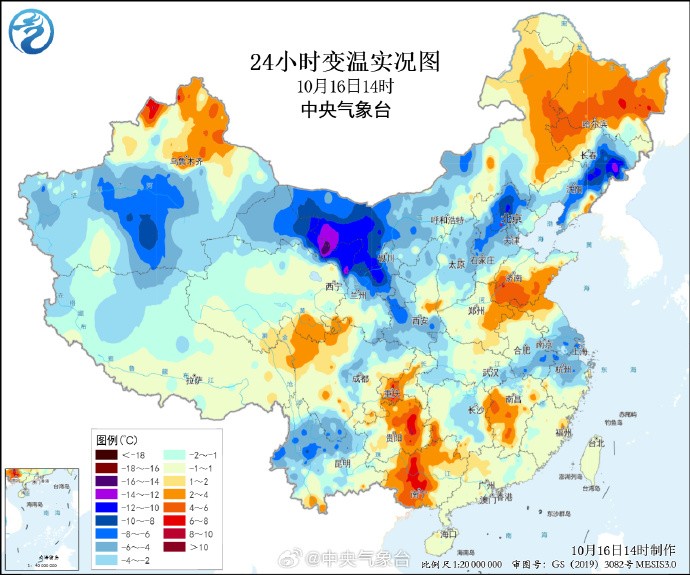 香港中通社10月16日電 據中國天氣網16日消息,16日起至19日,較強冷空氣將繼續自北向南影響中國大部地區,平均氣溫將累計下降4至8℃,其中,內蒙古中西部、華北北部、東北地區南部以及湖南、貴州等地部分地區降幅或超10℃。降溫後,全國大部地區氣溫將先後刷新下半年來新低。