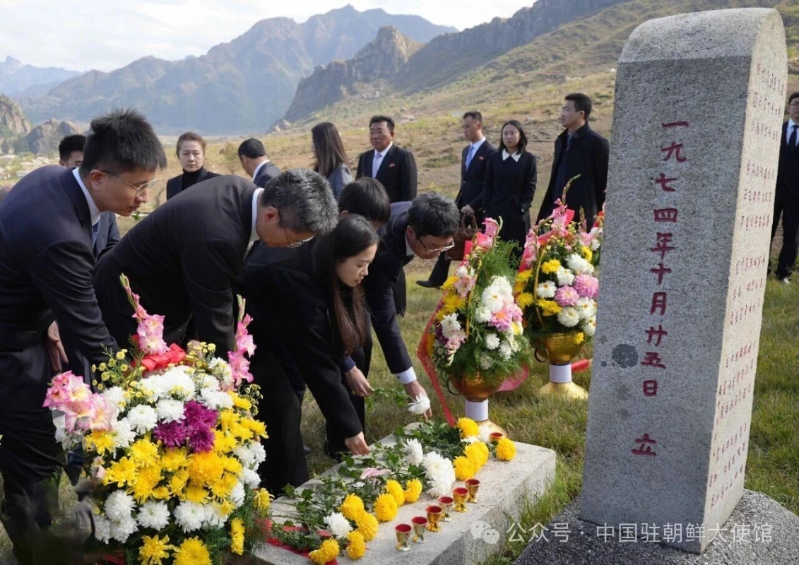 10月22日,中朝雙方在朝鮮黃海北道新坪郡隆重舉行新坪中國人民志願軍烈士陵園修繕工程開工儀式。圖源:中國駐朝鮮大使館 中國駐朝鮮大使館23日介紹,即將動工的新坪志願軍烈士陵園佔地面積約300平方米,安葬烈士343名。修繕工程預計年底前竣工。 據介紹,10月22日,在中國人民志願軍抗美援朝出國作戰75周年紀念日來臨之際,中朝雙方在朝鮮黃海北道新坪郡隆重舉行新坪中國人民志願軍烈士陵園修繕工程開工儀式。 同日,中國駐朝鮮大使王亞軍率使館外交官、在朝中資機構、媒體、旅朝華僑、留學生代表近70人赴朝鮮江原道洗浦郡,祭掃洗浦中國人民志願軍烈士陵園。洗浦中國人民志願軍烈士陵園安葬著1614名志願軍烈士。 1950年6月25日,朝鮮戰爭爆發,本為朝鮮半島上北、南雙方的民族內戰。27日,美國正式參戰。美國飛機多次轟炸和掃射中國東北地區,嚴重威脅中國的安全。中國人民志願軍於10月25日赴朝支援作戰,總計有240萬人先後加入中國人民志願軍,197653名志願軍英勇犧牲、魂歸他鄉。(完) 【編輯:彭玉婷】