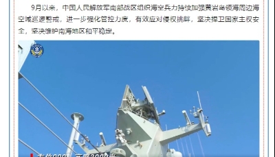 資料圖為海警南域艦在中國黃岩島附近海域巡航。新華社圖片 中國海警局表示,10月以來,中國海警持續加強黃岩島領海及周邊區域執法巡查,依法依規開展跟蹤監視、喊話警告、攔阻驅離非法侵權滋擾船隻和飛機,進一步強化有關海域管控力度,堅決維護國家領土主權和海洋權益。 本月16日,中國海警局新聞發言人劉德軍表示,當日,菲方2架偵察機非法侵入中國黃岩島領空,中國海警依法依規跟蹤監視、管控驅離。近期,菲以各種捕風捉影的借口,派出飛機頻繁非法抵近黃岩島附近海空域滋擾挑釁,嚴重侵犯中國主權,破壞地區和平穩定。 黃岩島位於北緯15°07′、東經117°51′海域,距離海南島約600海里,是中國南海中沙群島的一部分。據史料記載,至少在元朝中國就已發現了黃岩島。從上世紀90年代開始,在黃岩島附近海域捕魚的中國漁民頻頻遭到菲軍方襲擾,而在馬科斯政府2022年上台後,菲船侵闖中國島礁臨近海域的事件不斷發生。(完) 【編輯:彭玉婷】