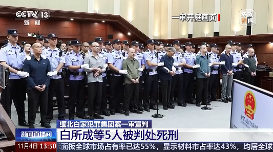 香港新聞網11月4日電 11月4日,緬北白家犯罪集團案在中國深圳市中級人民法院一審宣判,其中白所成、白應蒼、楊立強、胡小姜、陳廣益5人被判處死刑,另有7人被判死緩或無期徒刑,9人判囚3年至20年不等。