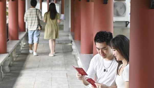 資料圖為河南省濟源市民政局婚姻登記大廳,一對新人領取結婚證後拍照留念。圖片來源:新華社 綜合5日媒體報道,政策層面持續發力是推動結婚登記回暖的關鍵,這一增長被視為婚育支持政策初見成效的重要信號。去年全年結婚登記僅610.6萬對,創近45年新低,而今年有望實現明顯反彈。 自今年5月10日起,新修訂的《婚姻登記條例》正式實施,取消地域限制、無需戶口本、全國通辦等舉措大幅提升了登記便利性,尤其便利了在非戶籍地工作生活的年輕人。 廈門大學丁長發副教授指出,此舉有效降低了時間與經濟成本,提升了民眾幸福感。與此同時,全國已有29個省份延長婚假,其中山西、甘肅提供長達30天的婚假。多地還推出結婚獎勵措施:浙江發放結婚消費券,湖南鼓勵發放“結婚紅包”,山西呂梁對符合條件的新婚夫婦現場發放1500元現金紅包,廣東部分村鎮亦推出禮包獎勵,進一步激發適齡青年結婚意願。 值得注意的是,婚姻登記便利化也催生“婚登+文旅”新業態。今年七夕節(8月29日)作為全國通辦後首個傳統佳節,上海單日登記2310對,創十年新高,其中1130對為異地新人,凸顯政策對流動人口的積極影響。 專家分析指,結婚登記回升不僅關乎家庭幸福,更對宏觀經濟產生深遠影響。作為新生兒出生率的先行指標,結婚數量增長有望緩解人口負增長壓力,並改善房地產市場預期。在人口結構變化與樓市調整交織的背景下,婚育支持政策正逐步釋放積極效應,為社會與經濟注入新活力。(完) 【編輯:彭玉婷】