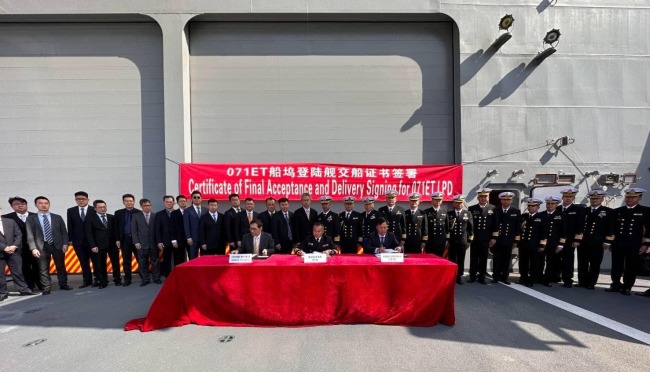 圖片來源:中國軍號 11月14日,四川艦從上海滬東中華造船廠碼頭解纜啟航,赴相關海域開展首次航行試驗任務。試航期間,相關部門對四川艦動力、電力等系統設備進行了一系列測試,達到了預期效果。後續試驗項目,將根據裝備總體建造計劃逐步展開。 2024年12月27日,中國自主研製建造的076兩棲攻擊艦首艦下水命名儀式在上海舉行。 經中國中央軍委批准,076兩棲攻擊艦首艦命名為“中國人民解放軍海軍四川艦”,舷號為“51”。 四川艦滿載排水量4萬餘噸,設置雙艦島式上層建築和全縱通飛行甲板,創新應用了電磁彈射和阻攔技術,可搭載固定翼飛機、直升機、兩棲裝備等,是中國海軍新一代兩棲攻擊艦。(完) 【編輯:紀東】
