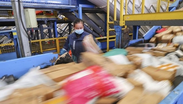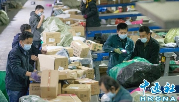 資料圖為電商快遞物流共同配送中心工作人員分揀快遞。 香港中通社圖片 此外,1到10月,中國郵政行業寄遞業務量累計完成1772.5億件,同比增長14%。其中,快遞業務量累計完成1626.8億件,同比增長16.1%。 1到10月,中國同城快遞業務量累計完成131.4億件,同比增長3%;異地快遞業務量累計完成1461.2億件,同比增長17.6%;國際/港澳台快遞業務量累計完成34.1億件,同比增長12.2%。(完) 【編輯:彭玉婷】
