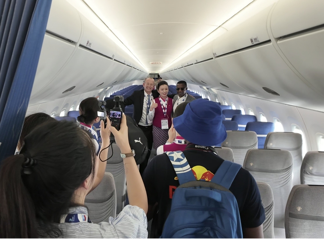 航展第一天,C919的參觀者熱情高漲,大批觀眾排起長隊等候登機參觀,機組人員詳細講解機型特點,還通過飛行表演等形式,呈現中國商用飛機發展的最新成果,并與全球航空業界深化交流互信。