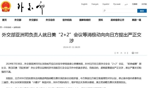 香港新聞網11月19日電 中國外交部亞洲司司長劉勁松昨日(11月18日)上午在北京同日本外務省亞洲大洋洲局局長金井正彰舉行磋商。中國外交部發言人毛寧在當日例行記者會上介紹有關情況。