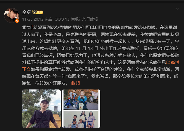 11月25日晚,中國歌手仝卓在微博發布緊急尋人信息 李某某,30歲,於11月13日外出“工作”後突然失聯。據其母親在社交媒體發布的求助信息顯示,兒子疑似被“高薪招聘”誘騙至柬埔寨班迭棉吉省一帶,此後僅通過手機傳回幾段聲音虛弱、內容模糊的消息,隨即徹底失去聯繫。家人一度無法確認其人身安全狀況。 事件引發社會關注。11月25日晚,中國歌手仝卓在微博發布緊急尋人信息,稱李某某是與其一同長大的表弟,呼籲公眾協助擴散線索。相關話題迅速登上熱搜,大量網友轉發並提供線索,推動事件進入外交與執法渠道。 中國駐柬埔寨大使館高度重視此案,啟動應急機制,與柬方執法部門展開聯合行動。26日晚,中使館正式通報李某某已被成功解救,並再次發出警示:近期仍有不法分子以“高薪工作”、“輕鬆賺錢”等話術誘騙中國公民赴東南亞從事電信詐騙等非法活動,嚴重威脅人身安全。 此前中使館已提醒,此類招工陷阱往往伴隨限制人身自由、暴力脅迫甚至勒索贖金等惡性行為,公民務必提高反詐防騙意識,切勿輕信境外“高薪”承諾,避免落入犯罪團夥圈套。如遇類似情況,應第一時間聯繫當地警方及中國駐外使領館求助。(完) 【編輯:彭玉婷】