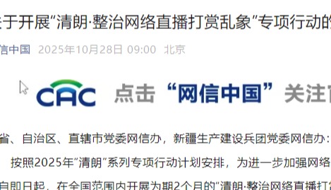 圖源:中央網信辦官網截圖 目前,該專項行動已累計處置違規直播間7.3萬餘個、賬號2.4萬餘個,指導網站平台發布治理公告和典型案例28期,嚴打一批大粉絲量主播賬號,對各類打賞亂象行為形成震懾,娛樂團播等問題集中領域的生態面貌明顯改善,攀比打賞和誘騙打賞等不良行為得到有力遏制,行業風氣持續向好。 據介紹,專項行動期間,網站平台積極履行主體責任,加強直播打賞規範管理。抖音平台制定完善直播團播內容管理、直播團播機構管理等規範,持續加強團播制度建設。快手、鬥魚平台圍繞直播著裝、舞蹈動作、行為互動和內容表達等維度,細化審核標準,全面收緊管理尺度。騰訊平台打造升級敏感部位檢測、性感動作識別和多人出鏡錨定等多維立體識別模型,提升低俗“擦邊”行為識別能力。陌陌平台全面梳理各直播場景榜單,調整優化排名規則,防範通過非理性、高額打賞等方式惡意提升排名。映客平台合理調降打賞金額,進一步限制單個禮物最高金額和單次打賞最高金額。秀色平台對單筆大額打賞或短時間內連續高額打賞,設置打賞“冷靜期”。小紅書、花椒平台完善打賞提醒功能,引導理性消費。(完) 【編輯:彭玉婷】