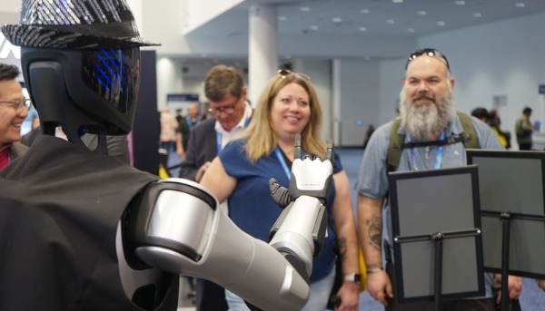 在2023世界人工智能大會展會現場拍攝的特斯拉機器人。新華社資料圖 在近日舉辦的國際消費電子展(CES)上,中國人形機器人企業集體亮相,成為展會焦點。 外媒報道稱,CES上超過一半的人形機器人展位來自中國企業,在總共38個人形機器人展位中佔據21席。英偉達首席執行官黃仁勛在主題演講中特別提到智元機器人,進一步提升了中國企業在國際舞台的能見度。 人工智能與機器人技術的深度融合,正推動人形機器人向更高階的“具身智能”演進。 Omdia報告強調,生成式AI使機器人能够執行更為複雜的任務,拓展了在製造、物流、醫療保健及客戶服務等領域的應用場景。