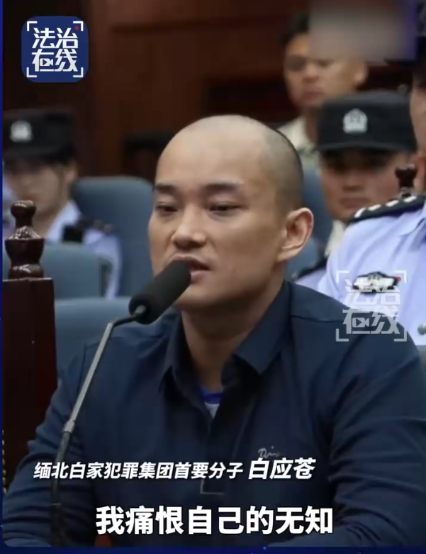 法治在線視頻截圖 白應蒼當庭懺悔說:“到現在我家也沒了,什麼都沒了,所以我現在痛恨詐騙不亞於任何一個人……我痛恨自己的無知,痛恨自己的愚蠢,我痛恨自己無節制的貪欲和短淺的目光。” “在被引渡到中國接近兩年的時間裡,我終於不必再擔驚受怕,也終於不必再苦苦支撐自己厭惡但無法改變的生活狀態。另外,我想代表我全家,給中國人民跟中國政府道個歉。因為我們全家的行為給數萬的中國人民造成了傷害。真的對不起。”白應蒼說。 紀錄片中拍攝了電詐園區“小黑屋”的牆壁上,有人絕望求救,寫下血淚詩《望牢外》:正二三月菜花黃,心在牢房想爹娘。想妻想兒想家鄉,何日才能出牢房。 據悉,身為緬甸果敢原主席白所成的次子,白應蒼身兼白家犯罪集團的多重職務。該集團涉詐資金超106億元人民幣、涉賭資金180餘億元,製造販賣冰毒達11噸,還造成6名中國公民死亡、1人自殺、多人受傷。 白家是繼明家之後,第二個進入死刑執行程序的緬北涉華電詐犯罪集團案件。據中國最高人民檢察院介紹,目前明家、白家犯罪集團共16人被判處死刑立即執行,7人被判處死刑緩期二年執行,16人被判處無期徒刑。(完) 【編輯:彭玉婷】