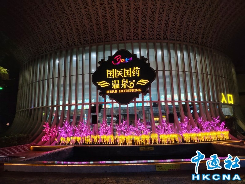 廣東河源巴伐利亞莊園的“國醫國藥溫泉”入口處。 香港中通社圖片 河源的溫泉資源具有分布廣、儲量大、水質好等特點,所以當地的溫泉度假區很多,分佈在全市不同地方。記者最近造訪的是河源巴伐利亞莊園的溫泉樂園。園中有諸多不同的溫泉池,只見許多大人帶著小孩泡溫泉、聊天、玩水,一派輕鬆歡樂的親子氛圍。 這一溫泉樂園內懸掛著中式燈籠,還有國風主題彩飾、傳統木雕等。這是為了配合此處最主要的特色之一:中藥調理泡池。每個不同的溫泉池旁配有解說牌,說明池水的溫度、池中調配的中藥材,以及以此搭配形成的獨特泡池養生功效等。(完) 【編輯:彭玉婷】