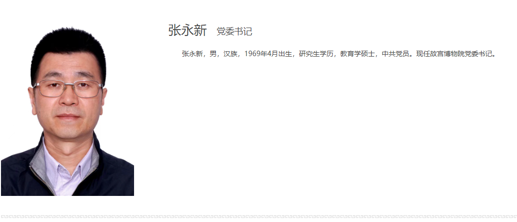 圖源:北京故宮博物院官網截圖 公開資料顯示,張永新,男,1969年4月出生,吉林九台人,研究生學歷,教育學碩士。張永新於1997年進入中國文化部工作,歷任主任科員、副處長、處長、副司長等職,並於2013年8月任中國文化部公共文化司司長。2018年,中國文化和旅遊部在國務院機構改革中組建成立,張永新出任中國文化和旅遊部政策法規司司長,後轉任辦公廳主任,直至此次履新。 北京故宮博物院成立於1925年,是在明清皇宮及其收藏基礎上建立起來的大型綜合性博物館,擁有中國現存規模最大、保存最完整的古代宮殿建築群和186萬餘件/套藏品。 北京故宮博物院於1961年被中國國務院列為第一批“全國重點文物保護單位”,1987年被聯合國教科文組織列入“世界遺產名錄”,2008年被評為中國首批國家一級博物館。(完) 【編輯:彭玉婷】