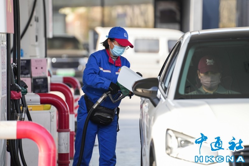 資料圖為山西太原一加油站,工作人員給車輛加油。 香港中通社圖片