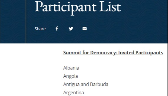 美媒曝光拜登“民主峰會”名單:對抗中俄,全是“心機”是不是民主國家,本國國民說了“不算”,西方政治學理論那套也不算,美國說了算…… 美國政府擬於12月9、10日召開世界“民主峰會”(Summit for Democracy)。拜登這次準備“大辦一場”,在全球邀請100多個“國家或政府”線上參會。 正式名單還沒有發布,但美國“政客”新聞網(Politico)設法拿到並於11月4日發布了擬邀請國清單。這幾天,這份名單在世界發酵,不少媒體分析出了拜登的“心機”。雖然大言不慚叫“民主峰會”,但名單卻充滿政治操弄。路透社11月7日質疑一些“民主遭受威脅”的國家也被邀請。 中國未被邀請,但台灣省卻在名單上。盡管名單上註明了邀請“國家和/或政府”,但美媒分析稱,單獨邀請台灣省,是暗中承認台灣地區作為一個“獨立”的“民主政府”。 此外,不止一家媒體和民權團體看出,美國在選擇參會國時“與中國抗衡的戰略考慮明顯在發揮作用。印度、菲律賓等與中國相鄰卻民主倒退的國家也將受邀。” 歐盟方面,27個國家中,只有與中俄關係頗近的匈牙利未受邀請,背後政治意圖昭然若揭。