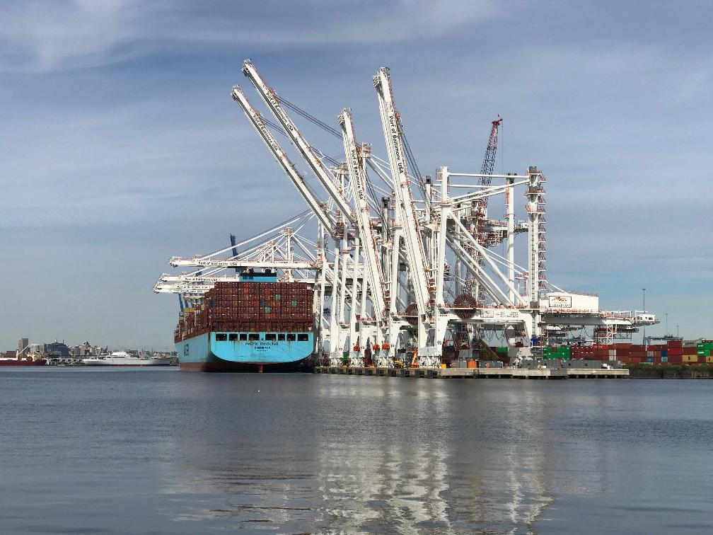 巴爾的摩港發布的背景圖,放大後可見“上海振華” 據《巴爾的摩太陽報》(The Baltimore Sun)11月10日報道,拜登當天於日落時分,在巴爾的摩港的敦達克海運碼頭(Dundalk Marine Terminal)開始演講。 “背景中隱約可見,用於從鄰近的西格特海運碼頭貨輪上吊起集裝箱的巨型起重機。附近卡車大小的集裝箱上,懸掛著紅、白、藍三色的旗幟。”報道中如是說道。 面對總統的到訪,巴爾的摩港的官方推特早早從11月8日起就放出了預告,以及演講的被進入。港口負責人多伊爾說:“我們期待並歡迎總統拜登於周三(10日)前往巴爾的摩港周三前往PoB考察正在進行的泊位項目、新的超大型起重機、已完成的疏浚作業,並討論未來將受益於兩黨基礎設施協議的項目。”