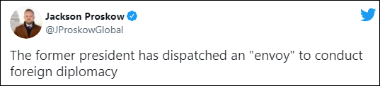 白宮方面也反駁了特朗普的“外交”企圖。在給美媒的回應中,白宮指出:“除了他非常活躍的想象力,唐納德·特朗普不再是總統,也沒有任何代表美國的‘代表大使’。”