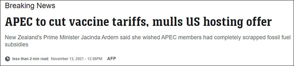 法新社報道截圖 法新社稱,美國提出要在2023年主辦APEC峰會的目的在於,在美國前總統特朗普“奉行了多年保護主義政策”之後,美國要“重申其對該地區的承諾”。 但上周剛剛過去的領導人會晤卻沒有通過這一提議。 本次會議的“東道國”新西蘭總理傑辛達·阿德恩(Jacinda Ardern)稱,美方這一提議還“有待進一步討論”。“正如你們可以想象的那樣,這並非是一個在領導人層面上展開實質性討論的議題,但我充分相信這個問題很快就會得到解決。” 白宮新聞秘書珍·普薩基(Jen Psaki)當地時間12日在白宮記者會上被提問到“是否是俄羅斯反對美國舉辦2023年APEC峰會”的問題時,她回答稱“有一個經濟體沒有加入美國主辦此項會議的共識”,不過她當時拒絕詳細說明是哪個經濟體投了“反對票”。 她還補充說,目前各方圍繞此事還在進行磋商,而美國希望該“打破這一僵局”,並且各方可以“繼續通過APEC保持經濟合作方面的積極勢頭”。 美聯社評論稱,美國申辦2023年APEC會議未能被同意一事顯示了“表面之下隱藏的一些分歧”。 報道援引一位匿名的東南亞國家代表稱是“俄羅斯不同意美國主辦”,俄方希望“美國能將俄方部分外交官從其黑名單中刪去,或允許他們進入美國開展工作”。 自2016年起,美國開始陸續驅逐俄羅斯外交人員。美國國務院發言人曾稱,至2018年3月,美國及其盟友已驅逐151名俄羅斯外交官。今年4月,美國總統拜登簽署行政令,宣佈再驅逐10名俄羅斯外交官,並對俄羅斯實施新一輪“全面制裁”。 盡管存在分歧,但新西蘭總理阿德恩稱,預計將在今年年底前就美國能否申辦的問題達成一致。她還稱,雖然地緣政治關係緊張,但“會議氣氛是務實的”。 據報道,本次會議圍繞新冠疫苗等問題取得了一定進展。APEC領導人宣言稱,APEC成員將繼續致力於公平分配疫苗,擴大疫苗生產供應,包括在各方同意基礎上自願轉讓疫苗生產技術,自願降低疫苗和相關醫療產品成本等。 法新社還註意到,白宮在會後發佈的聲明中表示,美國總統拜登利用此次APEC會議討論了“釋放該地區經濟力量以及加強美國在‘印度洋-太平洋地區’經濟參與的方法”,但環太平洋地區的國家和地區對此則“反應冷淡”(reacted coolly)。 【編輯:胡雪石】