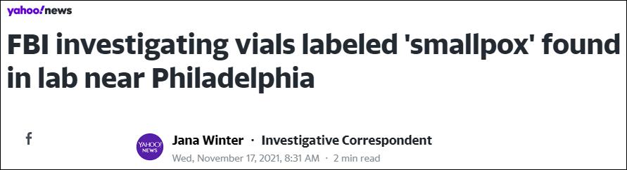 《雅虎新聞》報道截圖 據報道,一名美疾控中心發言人告訴媒體,這些標有“天花”的冷凍小瓶,是由一名實驗室工作人員在清理賓夕法尼亞州一家疫苗研究機構的冷櫃時偶然發現的,當時他戴著口罩和手套。 事件發生後,該機構一度被封鎖,沒有跡象表明,有任何人接觸過這些冷凍瓶,瓶子也完好無損。 天花,是一種由天花病毒引起的人類傳染病,傳染性強,病情重,沒有患過天花或沒有接種過天花疫苗的人,均能被感染,染病後死亡率高。一些歷史統計認為,天花曾至少造成1億人死亡,另外2億人失明或留下終生疤痕。 美國有線電視新聞網(CNN)則稱,天花病毒的致死率高達30%,美國最後一次已知的天花疫情發生於1947年。在全球開展疫苗接種行動後,世界衛生組織於1980年正式宣佈撲滅天花,使之成為首個於世上絕跡的人類傳染病。 《雅虎新聞》介紹,由於天花病毒的致命性,世界上只有兩個實驗室被授權可存放該病毒樣本,其中一家在俄羅斯,另一家在美疾控中心位於亞特拉大的實驗室。