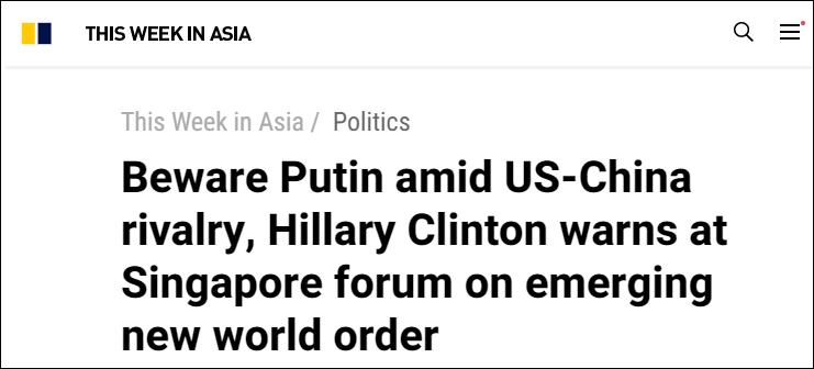 報道截圖 在今年為期3天的彭博社新經濟論壇中,美中競爭是無處不在的話題。希拉里在論壇最後一天視頻參加討論時表示,在美中競爭中,華盛頓及其西方盟友必須對俄羅斯總統普京保持警惕,因為他在利用可疑的“非國家行為者(non-state actors)”在全球範圍內投射影響力。 希拉里指出,西方此前曾預測崛起的中國將會讓俄羅斯產生警惕,中俄“邊境問題”將會迫使俄羅斯改善與西方的關係。然而這一預期並未實現,普京正試圖“更多地擁抱中國(hug China more)”,希望以此來避免雙邊問題。但與此同時,普京也在利用“非國家行為者(non-state actors)”在其他地方加強他的權力。