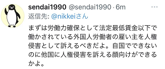 還有網友稱,“應該先譴責以低於法定最低收入的薪酬雇傭外國人勞動者的雇主。日本都沒做到,還有臉去譴責其他國家?”