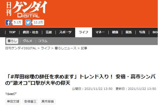 岸田文雄 值得注意的是,由於岸田文雄被挖出擔任“廣島縣中日友好協會”會長、岸田政府對華態度被指責“軟弱”等多重因素,據《日刊現代》22日報道,安倍晉三、高市早苗等日本右翼政客的支持者上周末剛剛在日本推特上舉行所謂的“網絡抗議遊行”,關鍵詞“要求首相岸田辭職”衝上熱搜。