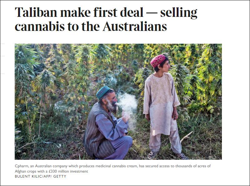 在8月份奪取全國政權以後,阿富汗塔利班政府雖然還沒有被西方承認,但已經有澳大利亞公司找上門簽署投資合同了,只不過這一次,澳大利亞公司是讓阿富汗建造一個大麻加工廠…… 綜合英國“泰晤士報”、阿富汗當地媒體“黎明”電視台等媒體11月24日報道,塔利班政府內政部發言人卡里·賽義德·霍斯蒂24日證實,澳大利亞醫藥公司Cpharm將投資4.5億美元在阿富汗境內建造大麻加工廠,用於為該公司加工“藥品”和“乳膏”。 霍斯蒂表示,Cpharm公司的代表與阿富汗塔利班政府的內政部禁毒處副處長進行談判後,阿國禁毒處最終同意為該公司的項目保留30000英畝(1214056公畝)的大麻種植地。