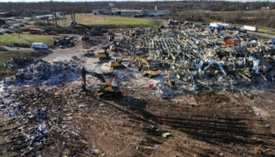 本次龍卷風災害影響範圍嚴重程度。圖源:CNN 此外,田納西州至少有3人死亡,而阿肯色州一家養老院至少有1人死亡,5人重傷。 相比於其他州,肯塔基州受損情況尤為嚴重。肯塔基州州長貝希爾表示,龍卷風沿著長達200多公里的路徑移動並造成嚴重破壞,該州可能至少50人在龍卷風襲擊中喪生。隨著搜救工作的推進,這一數字可能會繼續上升,接近70人甚至100人。 由於事發正值深夜,肯塔基州各縣救援人員在黑暗、強風和暴雨中尋找被困在倒塌房屋和建築廢墟中的人們。在受損最嚴重的梅菲爾德鎮,龍卷風襲擊該地區時,至少110人擠在一家蠟燭工廠內,“導致大量傷亡”。