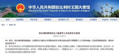 香港新聞網1月12日電 中國駐比利時大使館網站1月12日消息,駐比利時使館發言人就赴華人員信息安全答問。