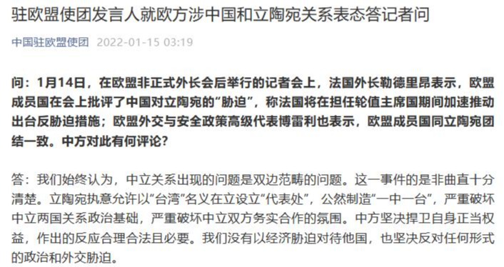 立陶宛外長蘭茨貝爾吉斯 圖自澎湃影像 立陶宛經濟部長阿爾莫奈特也跟風渲染“中國威脅”,妄稱中國對立陶宛開了所謂“經濟脅迫”的先例,“今天是立陶宛,明天可能就是其他國家。”她同時試圖營造“樂觀”氛圍,強調目前尚沒有公司離開立陶宛,今年該國經濟有望維持“強勁增長”。 但立陶宛企業對此有著不一樣的看法。立陶宛科技公司Brolis的聯合創始人克里斯蒂霍納斯·維茲巴拉斯(Kristijonas Vizbaras)表示,立陶宛激光產業約50%的零部件最終都會賣給中國客戶,為避免進一步的損失,他正考慮是否要把旗下新設立的傳感器企業的生產線遷往比利時。 “我們需要降低風險,將我們未來的擴張計劃從立陶宛轉移出去,這是我們正在做的,也是很多其他企業都在做的。”維茲巴拉斯說。 立工業家聯合會主席維德曼塔斯·楊努列維丘斯(Vidmantas Janulevicius)則分析稱,如果立陶宛不能與中國恢複關係,未來許多企業的投資可能都會避開該國,接下來的兩到三年可能會成為“困難時期”。 楊努列維丘斯試圖從兩方面來看待立陶宛面臨的形勢。他強調立陶宛不可能迴避中國這個世界第二大經濟體,同時又宣稱歐洲不能過於依賴中國:“過去30多年裡我們一直在向中國邁進,無法在短時間內跳開。但我們不能依賴一個國家,需要多樣化的供應鏈。” 在立陶宛多次乞求歐盟出頭對華施壓後,歐盟在當地時間1月27日就中立經貿問題向世界貿易組織(WTO)提起訴訟。但一些歐盟成員國私下裡紛紛表示,他們并不讚同立陶宛當局的行動,立陶宛當局執著於挑釁中國完全是“損人不利己”。 一名歐盟成員國官員對《金融時報》直言:“我不明白,在一個中國高度關注的問題上挑起事端到底能有什麼好處。”負責波羅的海地區事務的一名德國官員則表示,歐盟需要適當的戰略應對中國,但這不應該和立陶宛設立所謂“台灣代表處”引發的問題掛鈎,“在面對百倍的挑戰之際,我們沒理由為這種事情爭論。” 對於中立經貿問題,外交部發言人趙立堅1月27日回應說,中方一貫按照世貿組織規則行事,中立關係出現問題,其中的是非曲直十分清楚,所謂中國對立陶宛進行“脅迫”純屬無中生有,顛倒黑白。中立之間的問題,是政治問題,不是經濟問題;中立之間的問題,是立方背信棄義、損害中國利益導致的問題,不是中方向立陶宛施加壓力的問題;中立之間的問題,是中立雙邊問題,不是中歐之間的問題。 趙立堅表示,我們敦促立陶宛立即糾正錯誤,不要甘當“台獨”分裂勢力和反華勢力的棋子。立陶宛應該回到堅持一個中國原則的正確軌道上來。我們也提醒歐盟方面明辨是非,警惕立陶宛綁架中歐關係的企圖,勸導立陶宛同歐盟其他成員國一樣,履行同中國建交時所作的政治承諾。 【編輯:俞丹鳳】