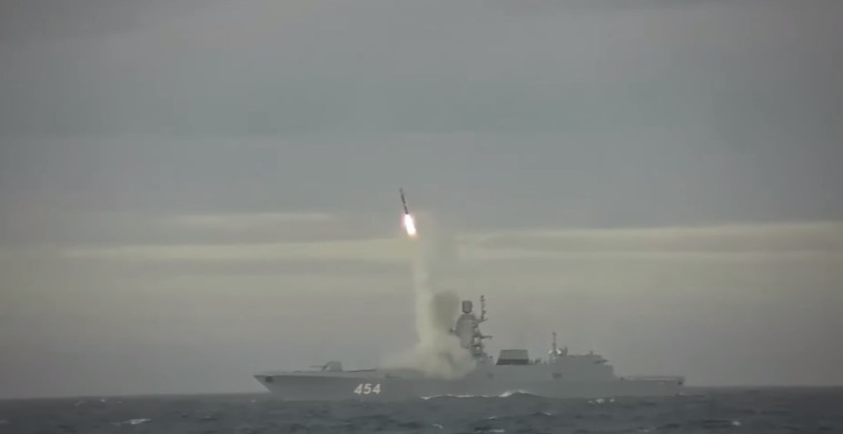 香港中通社5月28日電 當地時間5月28日,俄羅斯國防部發佈公告說,俄海軍“戈爾什科夫海軍元帥”號護衛艦從巴倫支海水域向白海的一個目標發射了一枚“鋯石”高超音速巡航導彈。導彈成功擊中了位於約1000公里外的海上目標。