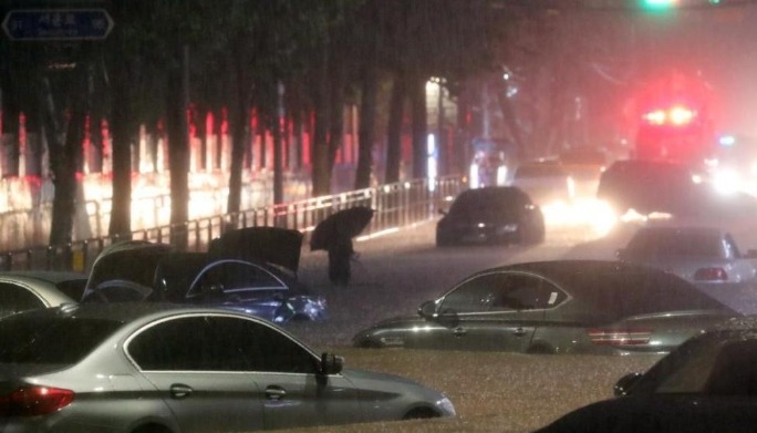 8月8日,在韓國首爾江南區,汽車被困在積水的道路上。 新華社圖片 截至10日上午6時,雨災致9人死亡,其中首爾5人、京畿道3人、江原道1人;失蹤7人,其中首爾4人、京畿道3人。因災受傷17人,均在京畿道。 有1253人因災被疏散轉移。公共設施方面,10處設施受淹,6處鐵路受損,8處堤壩潰口,28處山體滑坡。私人設施方面,2676棟住宅、商鋪受淹,7處擋土牆坍塌,29處泥沙淤積,5公頃農作物受淹,11處發生泥石流。 因災停電41地,其中37處恢復供電。2800多處受損設施中有94.2%完成災後應急處置。消防部門救起145名落河溺水人員,排障清淤742處,暢通河道2091處。 韓聯社報道稱,韓國水資源公社昭陽江壩支社原本計劃於10日下午3時開放大壩閘門洩洪,以減輕水庫防洪壓力,但當天將洩洪時間推遲一天至11日下午3時。 此次洩洪將於19日下午4時結束,出庫流量最大將達每秒2500立方米。據預測,洩洪後下游河流水位最多上升1.6米。公社方面原計劃前一天正午洩洪,但因降水量低於預期,推遲洩洪一天,當天因擔憂漢江流域發生水災再次推遲洩洪。 目前,昭陽江大壩的水位為186.6米,已接近190.3米的防汛水位。此次將是昭陽江大壩自2020年8月5日以來時隔兩年再度洩洪,也是自1973年10月建成以來第17次洩洪。(完) 【編輯:李雪萍】
