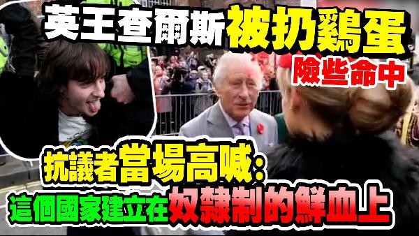 (視頻截圖) 現場視頻顯示,查爾斯三世和卡米拉在街上與人交談時,有人突然扔了數枚鶏蛋,並沒有砸中二人,其中一顆還從查爾斯三世眼前飛過掉到了地上。查爾斯三世看了一眼後繼續進行交談,幾名安保人員隨即上前護住了國王。 據報道,這名男子扔完鶏蛋後被警察逮捕,當時他還高喊“這個國家是建立在奴隸制鮮血上的”。 報道稱,當男子扔鶏蛋時,人群中發出了噓聲,還有人說“願上帝保佑國王”,並對抗議者說“你真丟臉”。 查爾斯在約克郡參加已故伊麗莎白女王雕像的揭幕儀式。報道同時提到,在經歷過這一插曲後,查爾斯三世繼續參加了活動。(完) 【編輯:李彥洲】