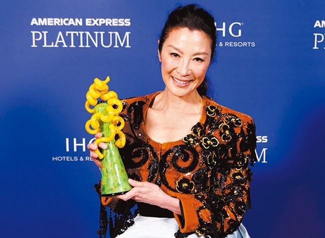 楊紫瓊。文匯網圖片 楊紫瓊在領獎台上說:“40年,我沒有放棄過。站在這裏是一趟美妙的旅程,歷經難以置信的競爭,但我認為一切值得。”回顧演藝生涯,她也提到過去在好萊塢因是少數族裔而不被認同的回憶。 楊紫瓊又說:“隨著時間流逝,我去年已經60歲了。我認為所有女性都明白,隨着歲月、年紀、數字逐漸增長,機會同時亦逐漸減少;然後,最好的禮物來了。” 電影《瞬息全宇宙》中,楊紫瓊扮演一位遭遇人生困境的普通美國華裔婦女伊芙琳。頒獎典禮上,她感謝《瞬息全宇宙》導演有勇氣寫出一個非常普通的移民、年邁女人、母親和女兒的故事。 楊紫瓊是金球獎史上第二位亞裔影后,第一位是2020年憑藉影片《別告訴他》獲獎的奧卡菲娜(林家珍)。 金球獎主辦方是好萊塢外國記者協會,因為獲獎名單和奧斯卡重合度極高,也被譽為“奧斯卡風向標”。 楊紫瓊在馬來西亞霹靂州首府怡寶市長大,畢業於英國皇家舞蹈學院,1983年當選馬來西亞小姐,隨後進軍電影業。20世紀八九十年代,她曾主演《皇家師姐》《警察故事》等香港動作電影。2022年12月,楊紫瓊當選美國《時代》雜誌2022年“年度標誌人物”,《時代》雜誌對她的評語是:“演員中的開路人”。(完) 【編輯:黎金良】