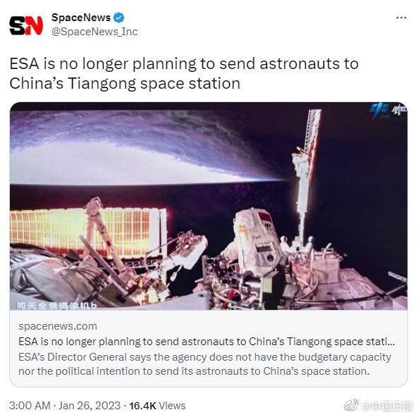 歐洲航天局:不再計劃向中國天宮空間站派遣宇航員 (報道截圖) 中國和歐洲在航天領域的合作始於上世紀80年代。2001年7月,中歐簽署“雙星計劃”合作協議,這是雙方開展的重大空間科學探測合作,樹立了中歐航天合作典範。近年來,雙方不斷擴大航天合作領域,實現互利共贏:2019年,中國嫦娥四號探測器實現人類探測器首次月背軟著陸,搭載了來自德國、荷蘭等歐洲國家的儀器和設備;2021年,中國“天問一號”與歐洲航天局“火星快車”任務團隊合作,開展了“祝融號”火星車與“火星快車”軌道器在軌中繼通信試驗,取得圓滿成功;此外,早在2015年中歐就簽署了載人航天領域合作相關協議,中國航天員葉光富曾赴意大利撒丁島開展訓練,來自歐洲的航天員薩曼莎·克里斯托弗雷蒂和馬蒂亞斯·約瑟夫,也曾在煙台近海參加海上救生訓練…… 去年10月,歐洲宇航員在飛躍北京上空時,在社交媒體寫下“仰觀宇宙之大,俯察品類之盛”的中國古文,在中國拉滿好感。 此時忽然“反水”,原因何在?中國日報社歐盟分社社長陳衛華一語道破:“歐盟或者說歐洲航天局對美國卑躬屈膝,將科學探索政治化,這簡直是歐盟的恥辱!” 近年來,以美國為首的西方國家長期對中國航天進行封鎖打壓。2011年,美國國會通過了沃爾夫法案,限制中美在航天領域的合作。美國國家航天局 (NASA)局長還多次對中國航天大放厥詞,極力渲染“中美太空競賽”,污衊中國航天“不合作”。 有歐洲網友表示:“看到歐洲精神被如此奴役,我很傷心。我們已經完全淪為美利堅的附庸。歐洲完全可以通過與中國、俄羅斯和其他國家的和平合作,取得更多成就啊。” 包括英國《衛報》在內的外媒曾多次指出,中國天宮空間站可能是未來唯一可運行的空間站。因為,由美國、俄羅斯、加拿大、歐洲和日本合作建造的國際空間站,預計將於2024年退役,儘管美國國家航空航天局表示,該空間站能在2028年後繼續運行。(完) 【編輯:李彥洲】
