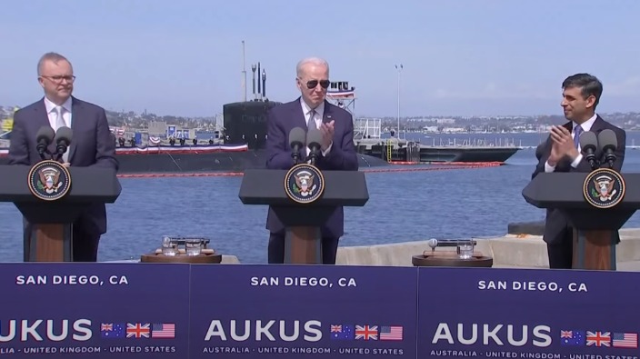 香港中通社3月13日電 綜合消息:當地時間13日,美國總統拜登、英國首相蘇納克和澳大利亞總理阿爾巴尼斯將在美國加州聖迭戈會面,討論“奧庫斯”協議核潛艇部分相關細節。據悉,三方首腦會議為期一天。