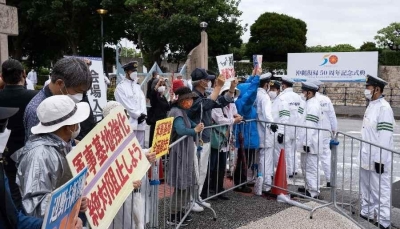 (視頻截圖) 據報道,居民們從上午8點左右開始聚集,手舉橫幅,上面寫有“不能把島嶼變為戰場”。其中一名居民表示,“之前從未在石垣見到過槍支和穿迷彩服的自衛官。不拆除基地絕不罷休。” 報道稱,居民團體代表向駐地負責人遞交了抗議書。 日本防衛省3月16日在沖繩縣石垣島設立當地首個陸上自衛隊據點,面積約47公頃,有約隊員570人,並將在石垣島部署導彈部隊。 駐地由負責石垣島、與那國島等島嶼防衛和警備的“八重山警備隊”,以及可運用12式陸基反艦導彈、03式中程防空導彈的導彈部隊等組成。 這是日本陸上自衛隊在沖繩本島以外,在西南群島設駐囤地的第4處。石垣島距離台灣僅270公里。(完) 【編輯:李雪萍】