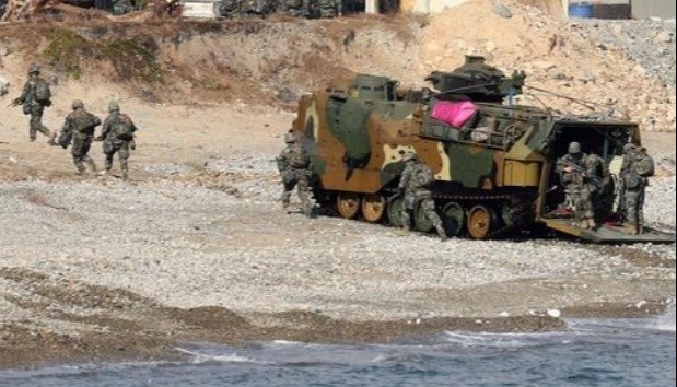 (視頻截圖) 據韓媒22日報道,美韓海軍在此次演習中檢查了掩護編隊護衛參加“雙龍”聯合登陸演習的登陸艦海上航渡的過程。在韓國海軍公開的照片中,韓軍“獨島”號兩棲攻擊艦(LPH,1.45萬噸級)、“馬羅島”號兩棲攻擊艦(LPH)和美軍“馬金島”號兩棲攻擊艦(LHD)在掩護編隊護送下駛往換乘編波區域。 報道稱,3月20日至4月3日,2023年雙龍演習在浦項近海舉行,旨在檢查美韓同盟戰備態勢並加強互操作性。為配合韓朝對話,2018年至2021年,美韓都沒有舉行旅級登陸演習。此次演習借美韓13日啟動的上半年聯合軍演“自由護盾”之機重啟,由1600多名士兵組成的師級登陸兵力、30艘艦艇、F-35系列戰機及陸軍AH-64阿帕奇攻擊直升機等70多架軍機、50餘輛韓國型兩棲裝甲突擊車(KAAV)參加。(完) 【編輯:李雪萍】