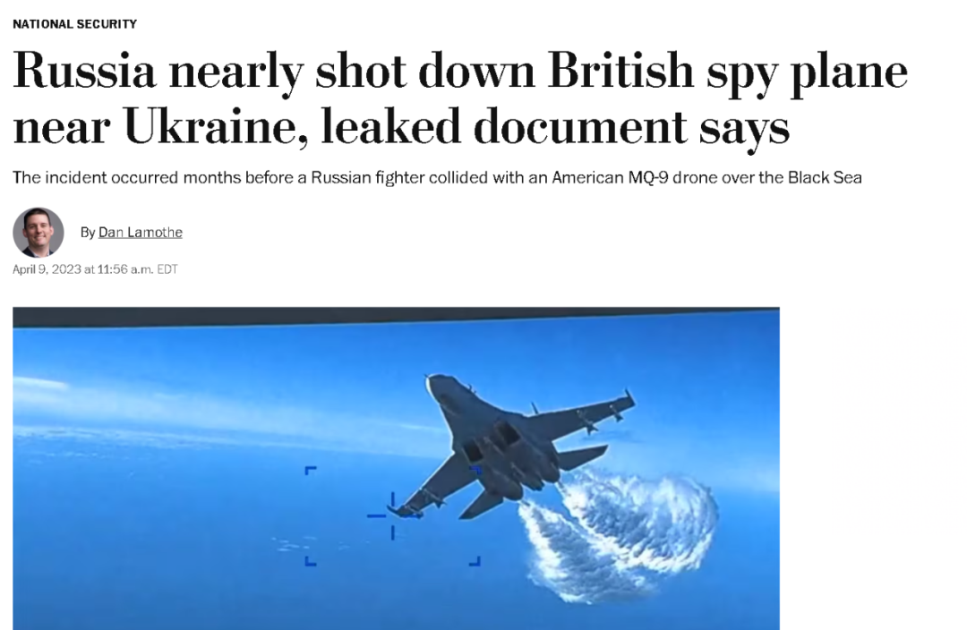 據多家外媒報道,在近日被人洩露到網上的美國國防部一批機密情報文件中,有一份情報讓不少歐美媒體倒吸了一口涼氣。因為這份情報顯示,英國和俄羅斯軍隊差點就在去年9月底擦槍走火,一架英軍偵察機險些被俄軍戰鬥機的導彈擊落。