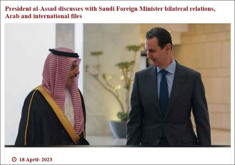 香港中通社4月19日電 敘利亞媒體報道,沙特阿拉伯外交大臣費薩爾18日訪問敘利亞,敘總統巴沙爾在敘首都大馬士革會見了費薩爾。