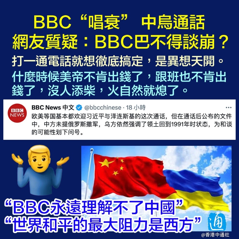 BBC“唱衰” 中烏通話,網友:BBC巴不得談崩?分享到:
