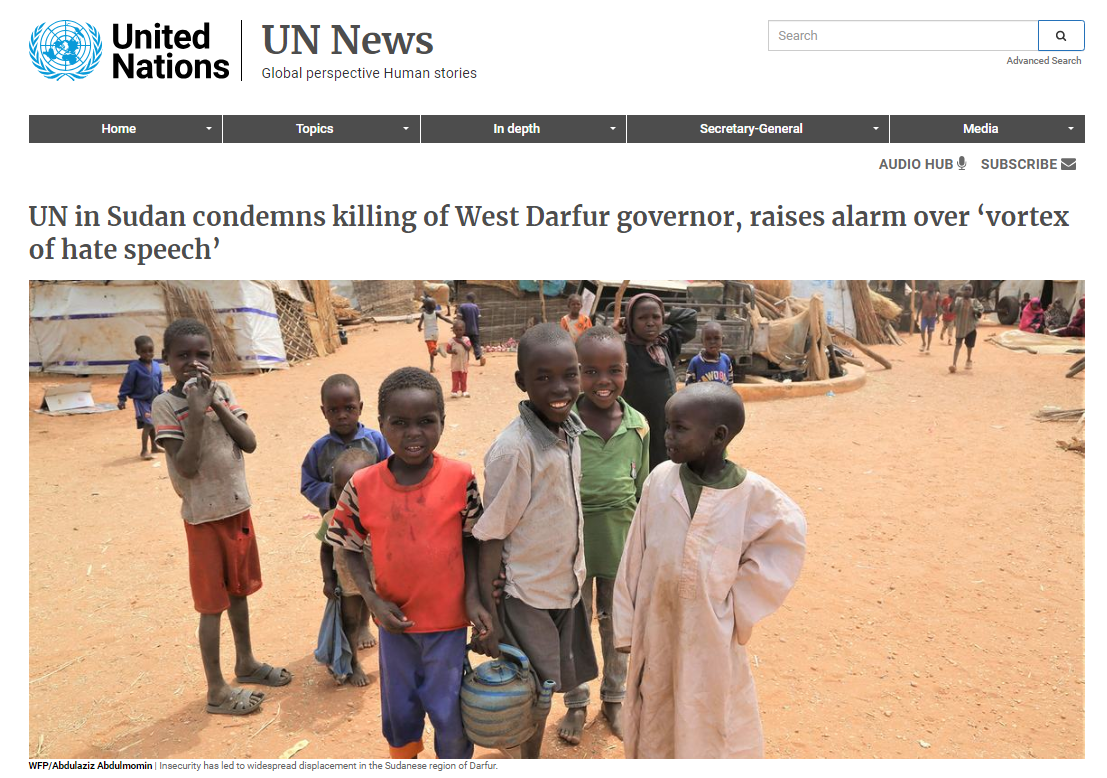 聯合國蘇丹特派團聲明 聯合國官網截圖 據聯合國官網消息,特派團在聲明中對殺害哈米斯·阿布卡爾(Khamis Abbaker)的行為予以強烈譴責。聲明指:“據可靠的目擊者描述,阿拉伯民兵和快速支援部隊(RSF)應為此負責,但是該部隊向特派團否認他們牽涉其中。” 據報道,阿布卡爾在6月14日被殺之前幾個小時,曾公開指責快速支援部隊在蘇丹各地挑起的軍事權力鬥爭中造成了平民死亡。 特派團呼籲迅速將肇事者繩之以法,不要讓該地區的暴力循環進一步擴大。蘇丹人民應保持理智,不要捲入仇恨言論和族裔分化的漩渦中。 聯合國難民事務高級專員格蘭迪在推特上說,對涉事地區針對婦女的性暴力報告表示“震驚”。他警告說,除非交戰雙方同意結束“這場摧毀蘇丹的戰鬥”,否則情況還會繼續惡化。 蘇丹武裝部隊與快速支援部隊自4月15日起在蘇丹首都喀土穆等地爆發武裝衝突。目前,衝突造成近千名平民被殺、約5000人受傷、約200萬人流離失所;另有近50萬人前往蘇丹境外尋求避難。大規模搶劫醫療物資和人道主義援助物資的行為仍在持續。(完) 【編輯:梅婉潼】
