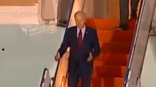 拜登現迷惑行為:下飛機突然停下,張開雙手一個半蹲