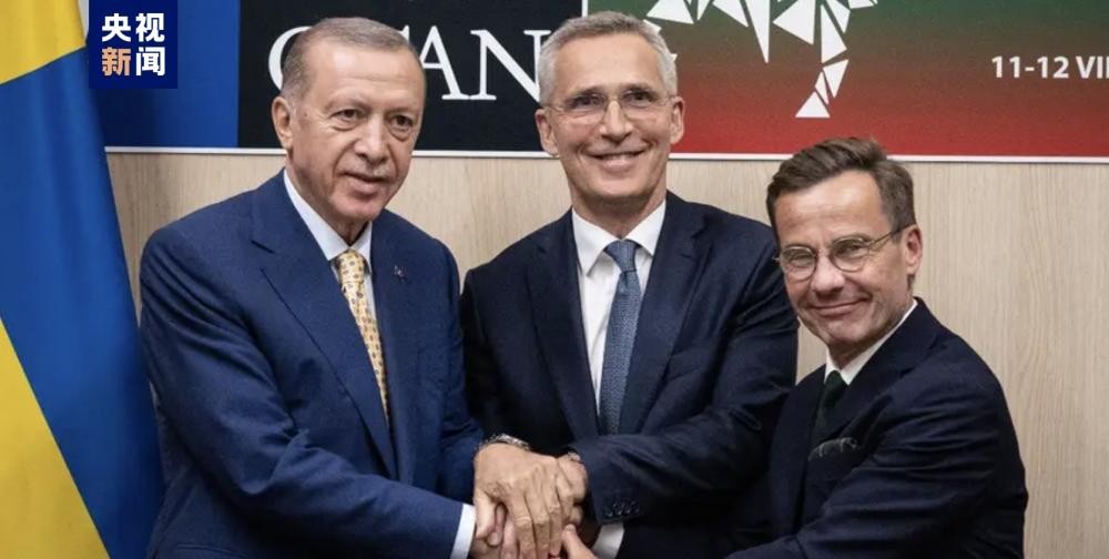 北約秘書長斯托爾滕貝與土耳其總統埃爾多安、瑞典首相克里斯特舉行三方會談 圖自央視新聞 綜合報道,埃爾多安當天要求,歐盟恢復土耳其停滯不前的歐盟成員國資格申請,作為瑞典加入北約的先決條件。不過,歐盟官員迅速拒絕了這項要求,稱這是兩個不同的議題。 三方在會後發表聲明說,瑞典和土耳其同意繼續在三邊常設聯合機制及新的雙邊安全協定下開展合作。瑞典將提出一份繼續打擊一切形式恐怖主義的路線圖,並將在加入北約後繼續與土耳其開展雙邊反恐合作。 瑞典也在聲明中說:“瑞典將積極支持重振土耳其加入歐盟進程的努力”。 斯托爾滕貝格說,埃爾多安同意盡快將瑞典的入約議定書提交給土耳其議會,並將與土議會密切合作以確保入約議定書獲得批准。他說:“瑞典加入北約是歷史性的一步,在此關鍵時刻有利於北約所有盟國的安全。” 克里斯特松則說,他感到“非常高興”,並認為這“對瑞典而言是美好的一天”。 俄烏戰爭爆發後,瑞典和芬蘭去年5月同時申請加入北約,芬蘭的申請今年4月獲得所有北約成員國批准,但土耳其和匈牙利尚未批准瑞典的申請。匈牙利外交與對外經濟部長西雅爾多上周曾表明,如果土耳其的立場有變化,匈牙利將不會拖延任何國家加入北約的進程。 美國和德國都歡迎埃爾多安的決定。其中美國總統拜登表示,會與土耳其合作,加強歐洲和大西洋地區的防禦和威懾力量。他又非常期待歡迎瑞典成為北約第32個成員國。(完) 【編輯:梅婉潼】