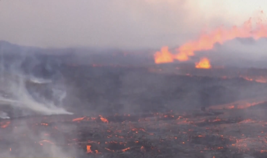 冰島火山噴發 視頻截圖 火紅岩漿從地表衝出,順著山坡緩緩流下壯麗美景有如末日,這是冰島火山兩年內第三度噴發。 這次火山爆發點,距離雷克雅未克只有40公里,抬頭就能看到,火山灰形成的巨大煙柱。 當局指屬於小規模噴發,火山灰暫時未有影響機場航班升降,但火山附近可能有高濃度的有毒氣體,當局呼籲民眾和遊客遠離。 事實上火山噴發前一周地震不斷,最高一天內偵測到2200次地震,專家稱是地下岩漿在移動,而流出的高溫岩漿冷卻後形成黑色地面,好像將地表燒成巨大坑洞。 另外,秘魯南部最活躍的烏維納斯火山,接連數天噴出火山灰直衝1700公尺高空,當局擔心可能有大規模噴發,宣布進入緊急狀態60天。(完) 【編輯:梅婉潼】