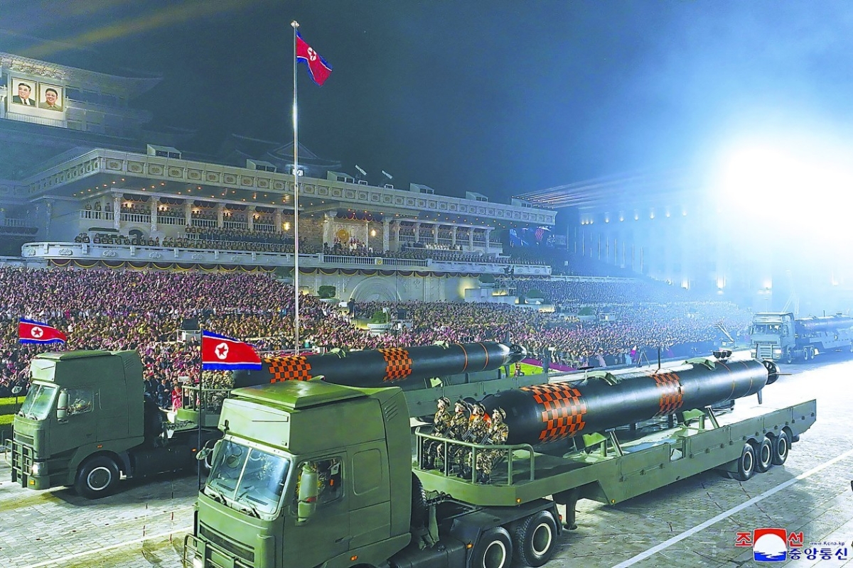 朝鮮核魚雷。圖自朝鮮媒體 韓國《東亞日報》認為,即使從朝鮮最北端海域發射,韓國的南海岸、東海岸的所有港口也將進入打擊範圍。還有推測認為,朝鮮有可能避開韓美海軍的監視網,繞行公海,接近南部海岸。 美國“動力”網站28日稱,朝鮮在這次閱兵式上展出一種新型無人潛航器,“它的功能與核魚雷非常相似”。 報道稱,外界將這種神秘的無人潛航器稱為“無人核攻擊艇”“無人水下航行器”或“遠程/長航時核魚雷”,大多數西方觀察家都認為它的特殊之處在於能攜帶核彈頭。 有軍事類媒體認為,朝鮮的“海嘯”可能與俄羅斯的核魚雷“波塞冬”類似,但很有可能不是使用核動力而是電池動力,現在還沒有證據表明朝鮮已經掌握小型核動力技術。 美國近來頻繁向朝鮮半島派遣戰略武器,出動戰略核潛艇40多年以來首次停靠韓國港口等,以向朝鮮施壓。同時韓國正在大力發展所謂“殺傷鏈”系統,試圖在朝鮮導彈發射前就將其摧毀。日本也以朝鮮導彈威脅為由發展攻擊性武器,在必要時“先發制人摧毀朝鮮導彈基地”。有分析認為,可以攜帶核彈頭的朝鮮無人潛航器顯然就是針對這些舉動的回應。 短程戰術武器“三件套”開始量產? 韓聯社稱,在閱兵式最後,像往年一樣,洲際導彈“火星-17”型(液體燃料)和“火星-18”型(固體燃料)進行了展示。今年2月建軍節75周年夜間閱兵式上,朝鮮曾出動過11枚“火星-17”型導彈、4-5枚“火星-18”型導彈等多型洲際導彈。