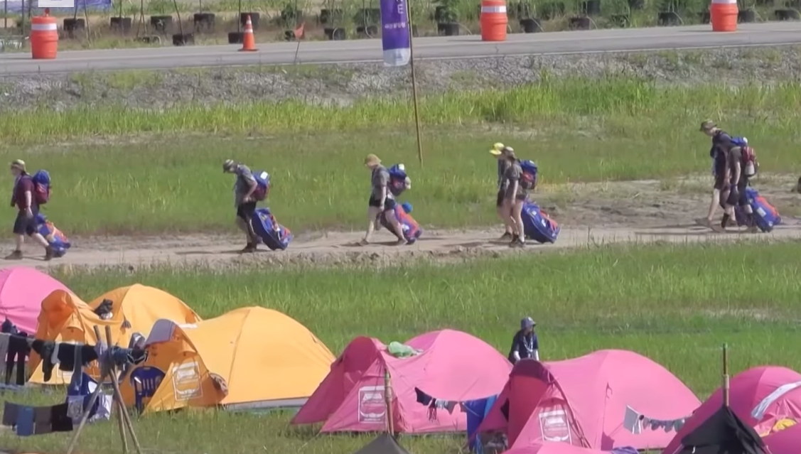韓國扶安郡新萬金舉行的世界童軍露營大會 視頻截圖 “‘第25屆世界童軍大露營’(組織方)今早得到韓國政府確認,鑒於台風‘卡努’預期影響,將計劃讓所有參與者提前離場,”“第25屆世界童軍大露營”組織方在一份聲明中說。 據環球網此前報道,因極端高溫和準備不足,在韓國舉辦的“第25屆世界童軍大露營”遭到了多國代表團的投訴和指責。據韓聯社6日報道,美國代表團當天中午開始陸續離開舉辦地新萬金野營場,前往駐韓美軍平澤基地。參加此次大露營人數最多的英國代表團(4400餘人)已於5日開始撤離,新加坡等國代表團也表示將中止露營活動,返回本國。 據韓聯社此前報道,韓國氣象廳6日表示,今年第6號台風“卡努”路徑向韓國慶尚圈海岸方向調整,預計9日起將直接影響位於東南部的釜山、蔚山和慶尚南道。報道稱,由於“卡努”路徑改變,除全羅南道海岸外,韓國全境大部分地區都處於影響範圍之內。 【編輯:梅婉潼】