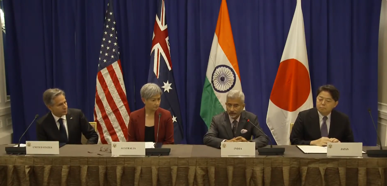 美國國務卿布林肯、澳大利亞外長黃英賢、印度外長蘇傑生和日本外相林芳正(從左到右)。視頻截圖 報道稱,日本外相林芳正、美國國務卿布林肯、澳大利亞外長黃英賢、印度外長蘇傑生預計出席。林芳正可能將就福島第一核電站核污水排放入海,基於國際原子能機構(IAEA)的綜合報告,說明稱將保持透明度,在安全上力爭萬無一失。 在烏克蘭局勢方面,外長會議將要求遵循不得對他國領土進行武力威脅和行使武力的《聯合國憲章》,爭取和平解決問題。還計劃就基礎設施支援、經濟安全保障、氣候變化交換意見。 由於印度參加了“金磚五國”(BRICS)框架,日美澳有意拉攏印度,共享反對憑藉實力改變現狀的姿態。 這將是3月在印度開會之後,再度召開Quad外長會議。3月的會議發表了聯合聲明,就烏克蘭局勢寫明“不允許使用或威脅使用核武器”。 中國外交部發言人毛寧在3月3日就有關問詢表示,關於“四邊機制”,中方已經多次表明立場。中方一貫認為有關國家應當多做有利於增進地區國家安全和互信、有利於維護地區和平穩定的事。 有分析認為,所謂“四邊機制”並非看上去那樣“親密無間”。日本電視新聞網曾報道,在G20內部美西方與俄羅斯對立的情況下,印度與歐美、俄羅斯都保持著友好關係,美日澳三國希望通過“四邊機制”進一步強化與印度的關係。澳大利亞《悉尼先驅晨報》則表示,同是“奧庫斯協議”(AUKUS)成員的美國與澳大利亞在核動力潛艇的技術轉讓問題上仍存在障礙。(完) 【編輯:梅婉潼】