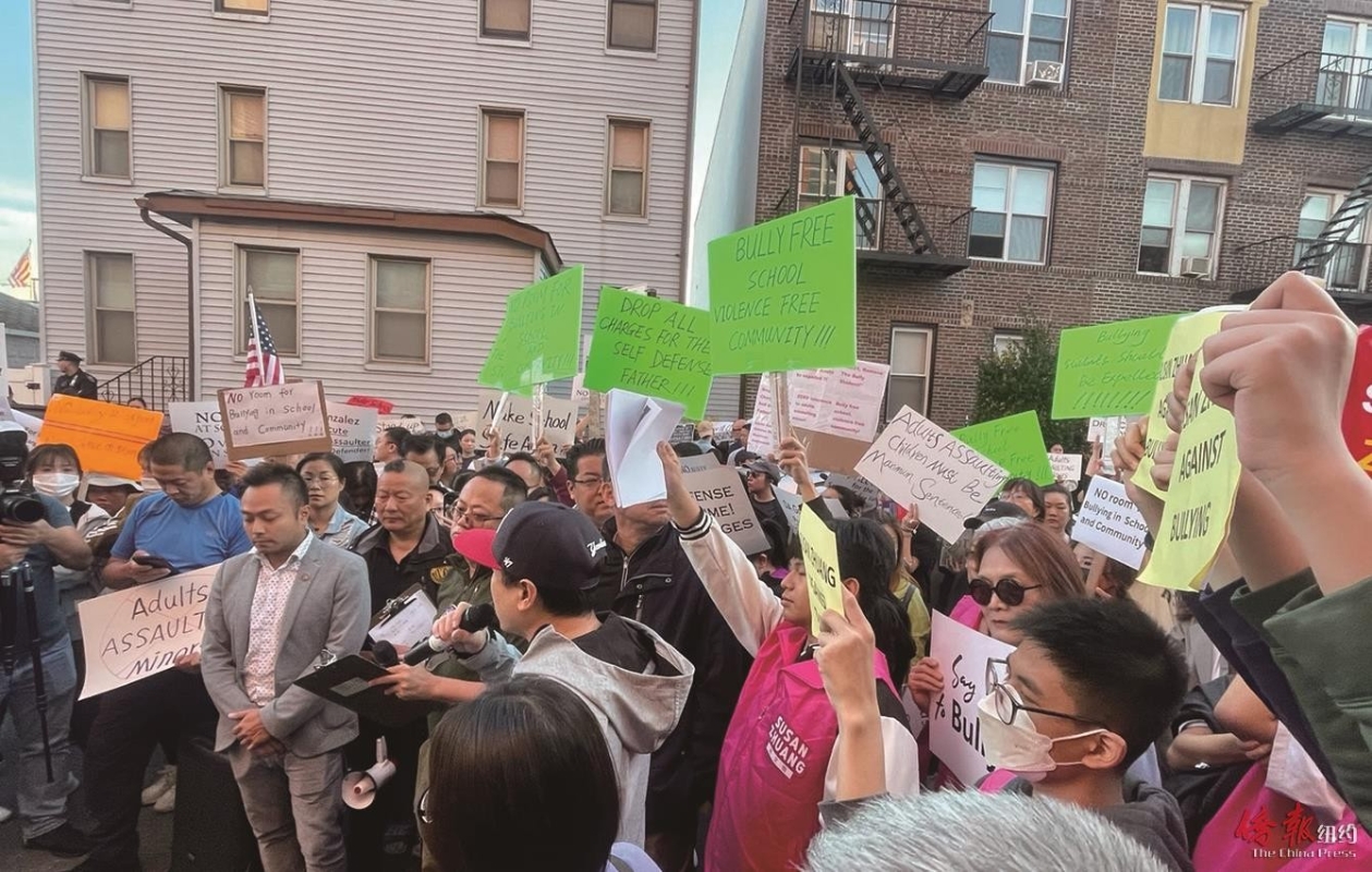 針對紐約戴克高地201初中華裔學生及父親遭毆打一案,連日來眾華裔家長多次展開示威抗議。僑報網圖片 上月28日,201初中1名華裔學生打籃球時與2名中東裔學生發生衝突,華裔學生遭對方家長打傷並送醫。2日後,中東裔學生家長又帶著武器來到華裔學生家實施報復。連日來,該案引發眾多華裔家長和社區的抗議示威。與此同時,“停止校園霸淩“(STOP SCHOOL BULLYING)簽名請願活動也在網上發起,已有超過2200人簽署。 Kristen Schafer局長10月17日介紹,9月28日霸淩發生後,警方接報趕到醫院,但肇事者Hassan Saab已離開。辦案警員後前往其住所試圖將其逮捕,但對方沒有露面。根據美國法律,在沒有逮捕令的前提下,警方不能強行進入住宅實施逮捕。 Eddie Lau局長介紹,警方在9月30日事件中先逮捕了Hassan Saab。但通過查看視頻,警方發現受害華裔學生的父親雷(Lei)先生也有拿著武器的激進行為,因此也將他逮捕。Eddie Lau表示,事件全過程中,雷先生有時候是在保護家人,有時則是先動手的那個,這就是他被捕的原因。 此案有待檢方進一步調查,再決定是否向法庭起訴。 戴克高地被譽為紐約市最佳居住區之一,也是著名的華人聚居區。(完) 【編輯:馬華】