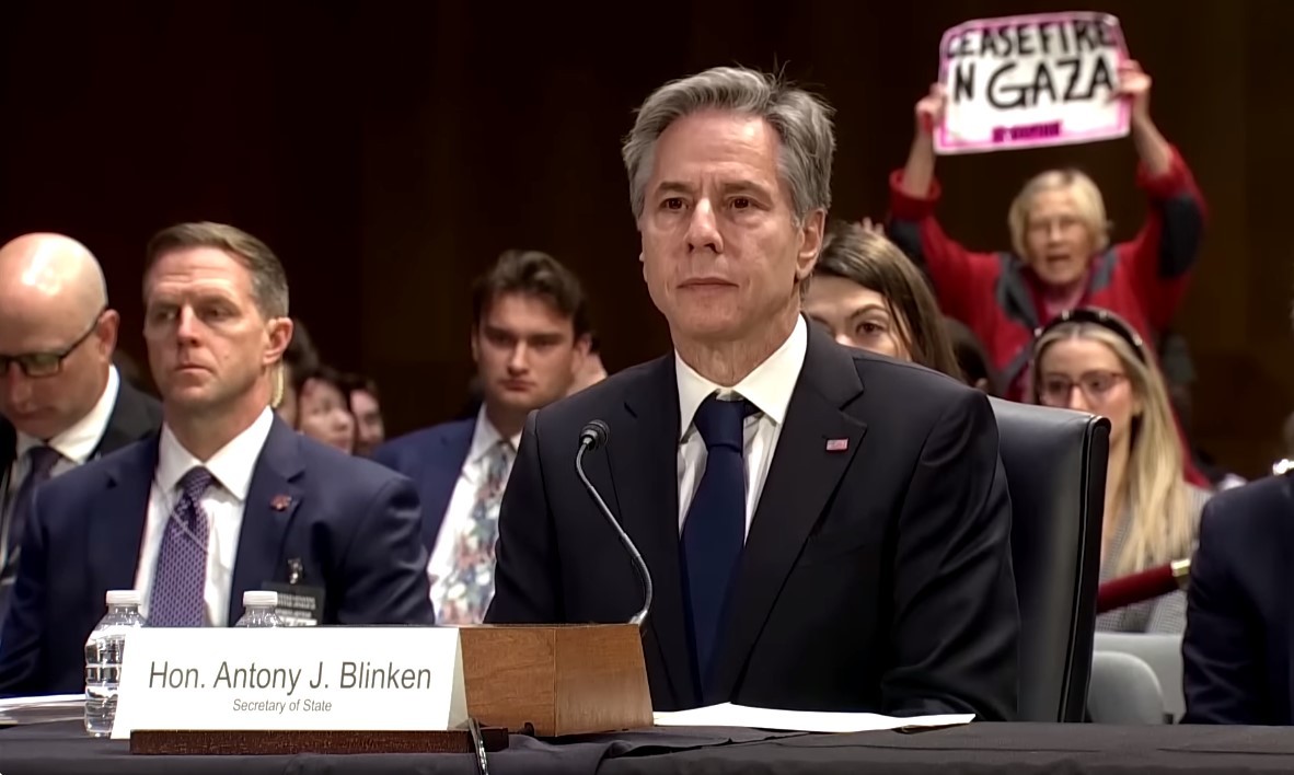 布林肯出席參院聽證會遭反戰示威者打斷發言分享到: